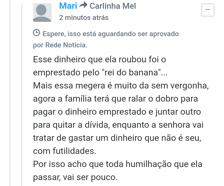 Por isso acho que toda humilhação que ela passar, vai ser pouco.